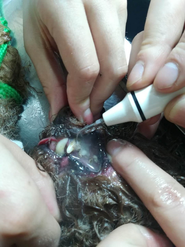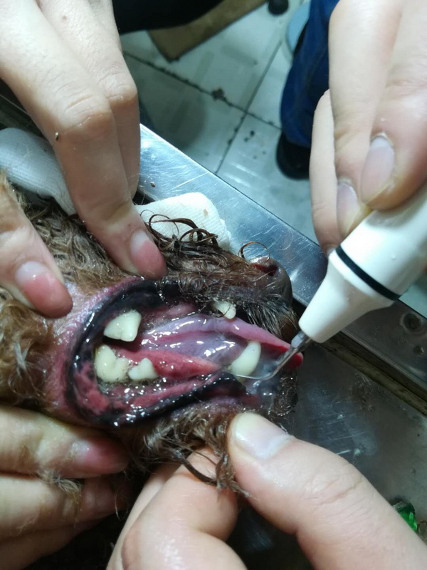 7歲泰迪多多、6歲泰迪哈利長期吃肉,牙垢嚴重滋生,在我院美容師及助手的細心操作下,他們倆的牙齒變得又白又亮。 溫馨提示:廣大寵物主人,千萬不要按照自己的喜好喂養(yǎng)寵物,積極了解寵物相關(guān)知識,合理飼喂是非常重要的!